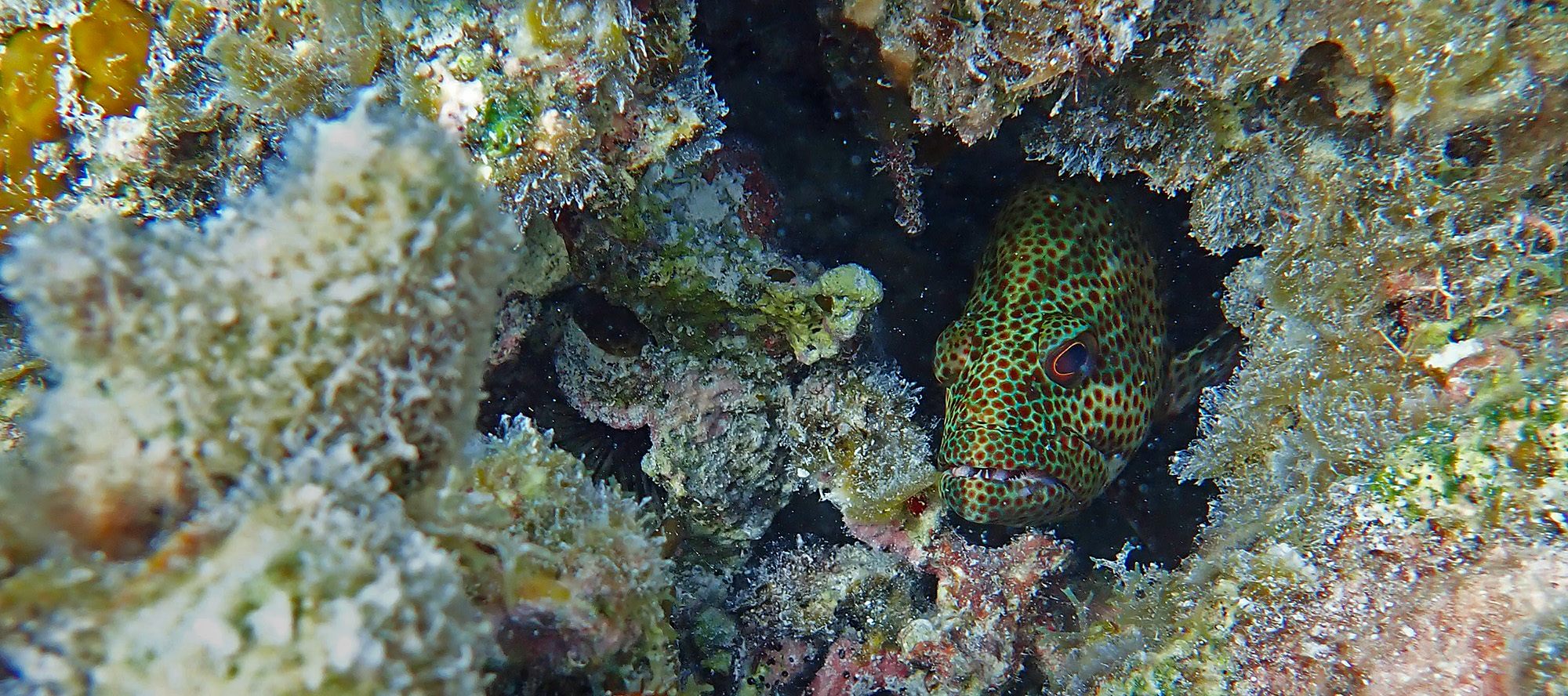 Some fishes are shy, hiding in holes like this Red Hind