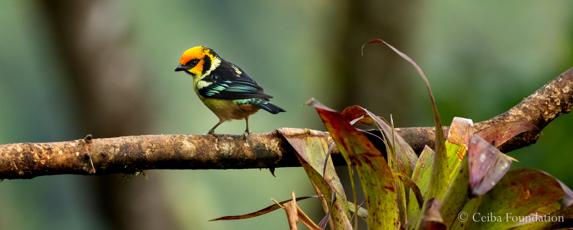 Opal-crowned Tanager, nesting in a canopy bromeliad: