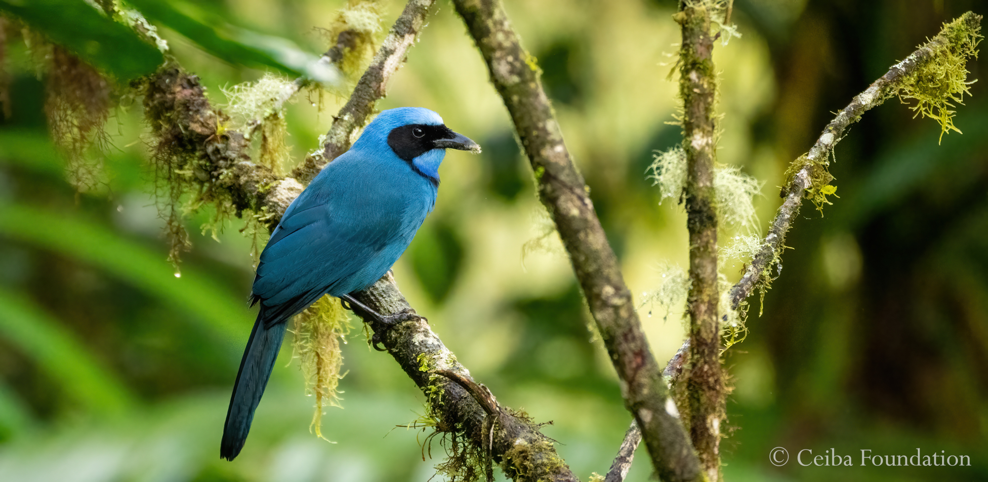 Turquoise Jays travel through the cloud forest in loud packs of three or six, like masked bandits hunting anything they can lay their bills on